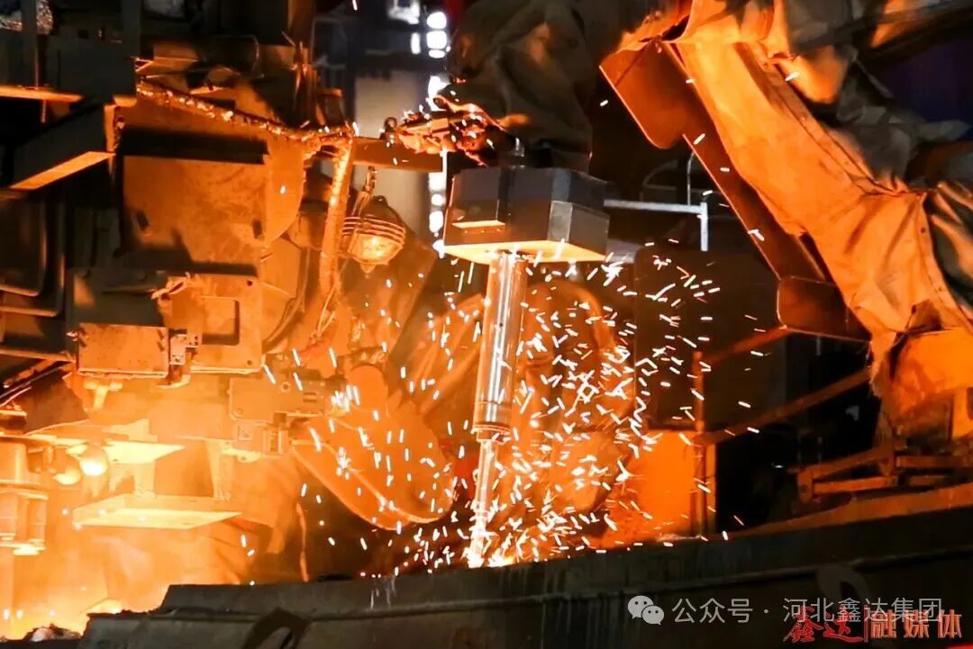 在智能制造的時代浪潮中,鑫達敢為人先,工業環網與5G專網無縫銜接,構建起“8+2+1”智能制造體系,實現全流程數據互聯與業務協同,徹底打破數據孤島與業務壁壘,讓生產效率與運營效能實現質的飛躍。車間內,14 臺智能機械手臂精準作業,10余套智能自動化系統平穩運行,無人連鑄平臺應用兩臺機器人同時更換長水口實現行業全球首例,彰顯鑫達在智能制造領域的強勁實力。