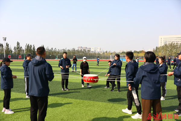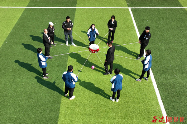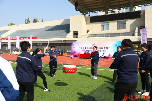 同心擊鼓項目中,運動員默契配合,同心協力將鼓騰空,擊鼓顛球,將鑫達人心往一處想、勁往一處使、眼往一處看的精神體現得淋漓盡致。