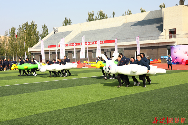 龜兔賽跑項目中,龜不再是寓言中那只慢悠悠爬行的烏龜,而是得益于運動員的強健體魄和同步協作,健步如飛;兔也不再是寓言中那只驕傲自滿、固步自封的兔子,而是充滿體育競技精神,迎風奔跑,充滿無限活力。